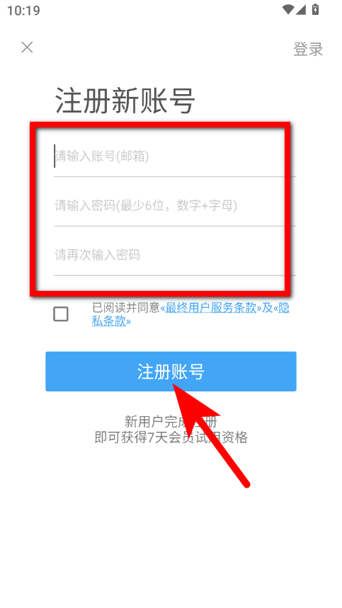 4、在注册新账号页面,输入账号、密码后点击注册账号,完成注册操作。