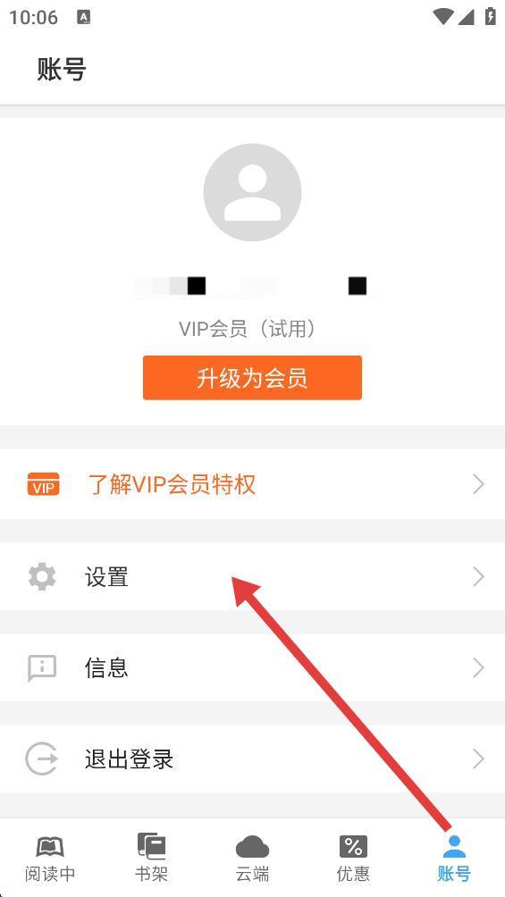 2、在账号页面中,找到设置选项并点击,进入设置界面。