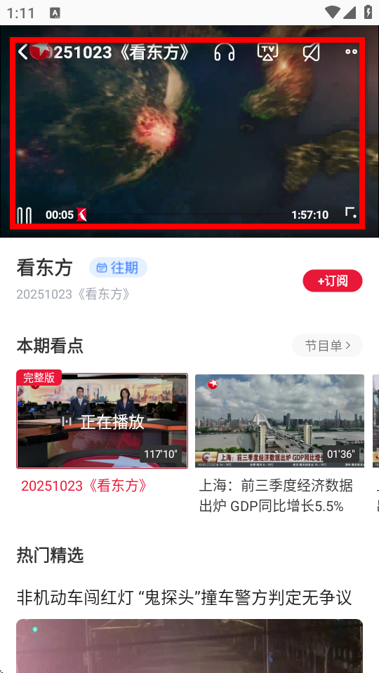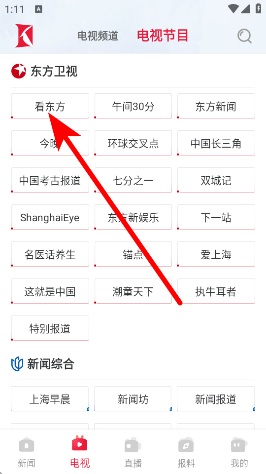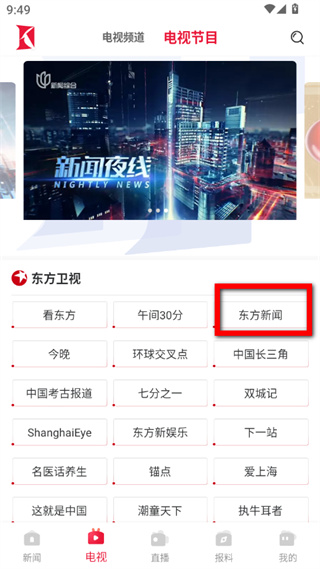 3、在节目列表页面,选择东方新闻等节目,进入节目播放页面。