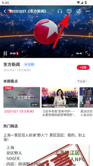 4、在节目播放页面,找到投屏图标并点击,即可进行投屏操作。