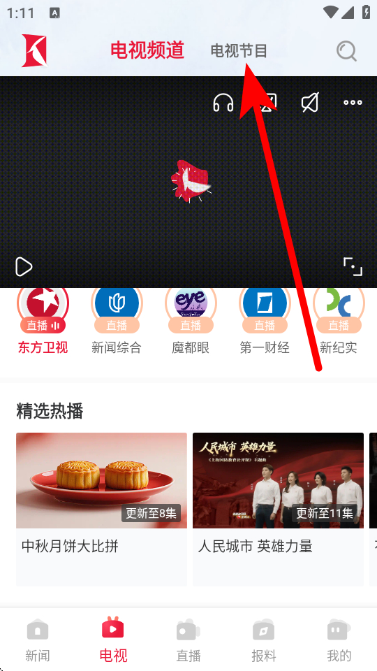 3、在电视节目列表页面,点击要观看的节目,如看东方,进入节目播放页面。