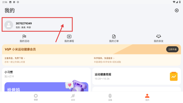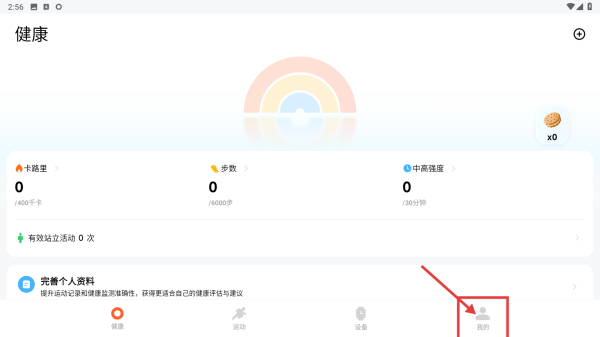 1、打开运动健康类应用,点击底部我的选项,进入个人中心页面。