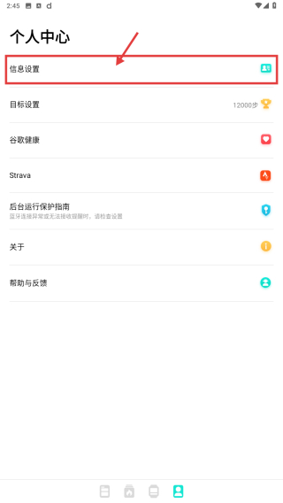 2、在个人中心页面,点击信息设置选项,进入信息设置页面。