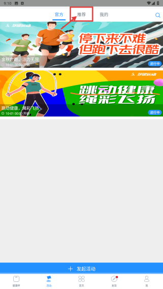 1、打开运动类应用,点击底部活动选项,进入活动页面。