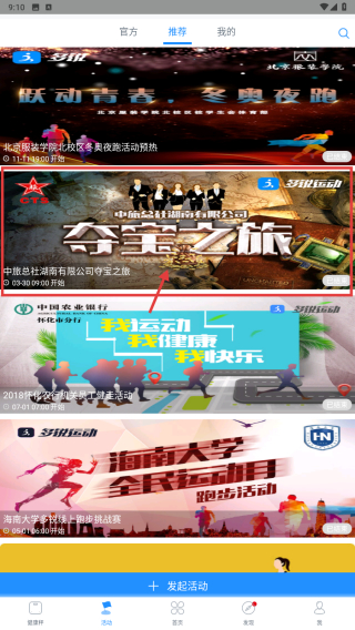 3、在推荐活动列表里,找到夺宝之旅活动条目,点击进入活动详情页。