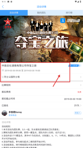 4、在活动详情页,即可查看该活动的地点、时间、规则等详细信息。