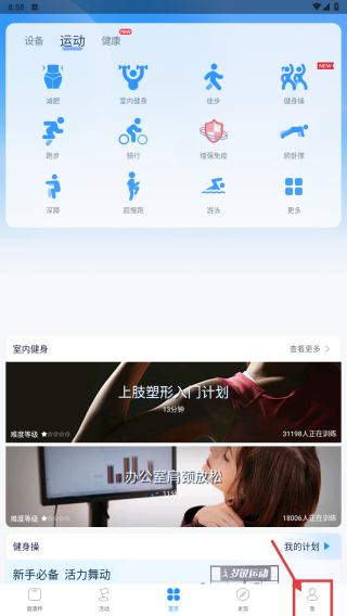 涵盖跑步、徒步、骑行等多种室外运动方式,同时包含减肥、增肌、塑形等室内健美课程,满足用户在不同场景下的健身需求。
