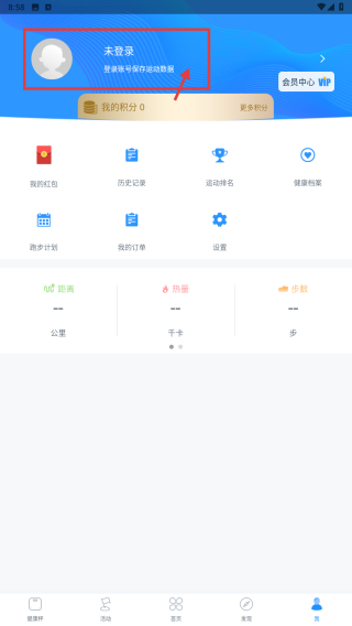 1、打开运动健康类应用,点击底部我的选项,进入个人中心页面。