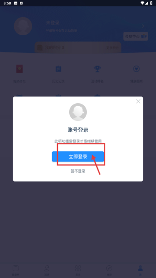 3、在账号登录提示框中,点击立即登录按钮,进入登录方式选择界面。