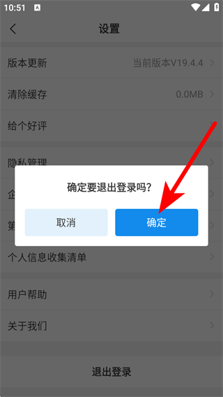 4、在确认退出界面,点击确定的按钮,即可完成退出登录操作。