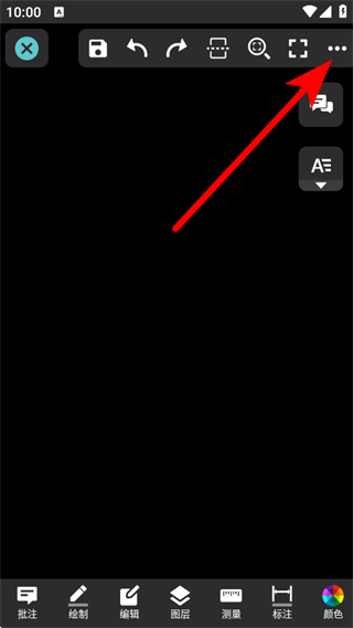 3、在图纸编辑界面,点击右上角的···更多选项按钮,展开操作菜单。