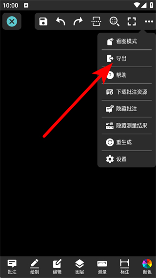 4、在展开的操作菜单中,点击导出的选项,即可进行图纸导出操作。