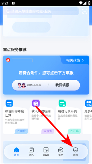 1、打开个人所得税APP首页,点击底部导航栏的我的,进入个人页面。