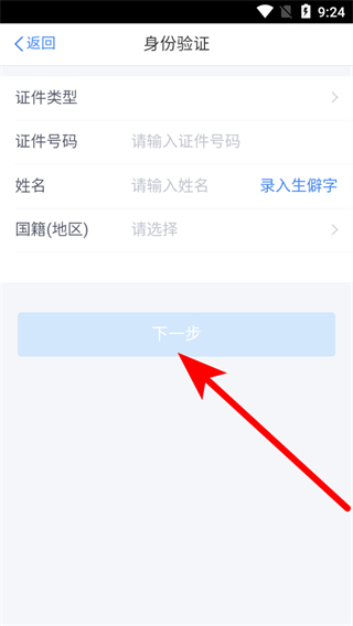 4、在身份验证页面,完成信息填写后点击下一步,按照后续提示完成找回。