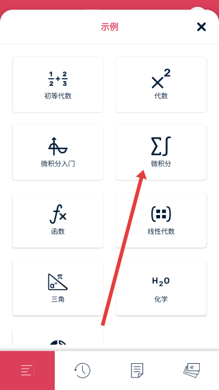 2、在功能示例页面中,可以点击微积分选项进入查看相关功能。