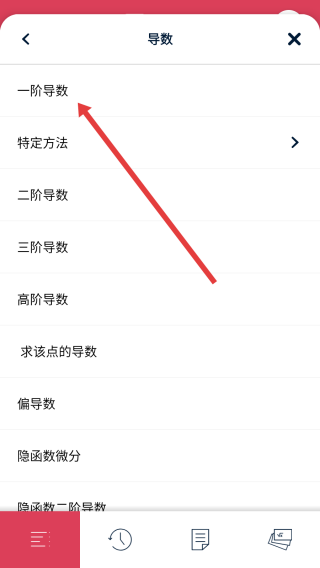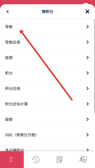 3、在进入到微积分页面中,可以点击导数选项,进入查看。