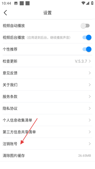 3、在设置页面,点击注销账号可进入账号注销页面。