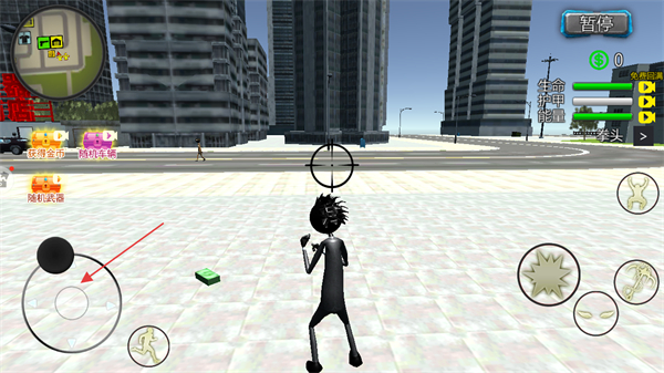 2、通过左侧摇杆控制角色移动,在城市中自由探索。