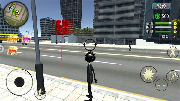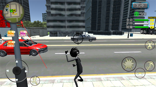 3、在街道上与车辆、行人互动,或进行战斗,积累金币。