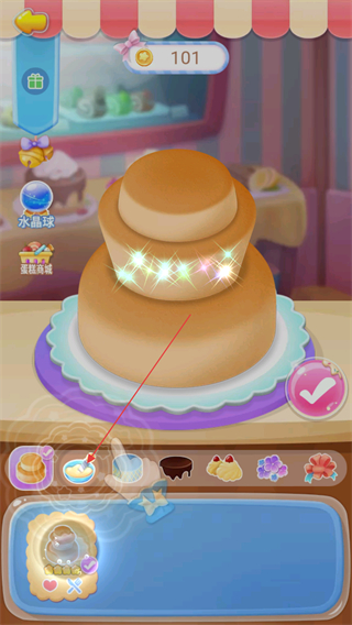 4、完成蛋糕装饰后,点击确认按钮,提交蛋糕作品,获取金币奖励。