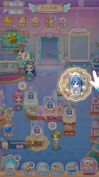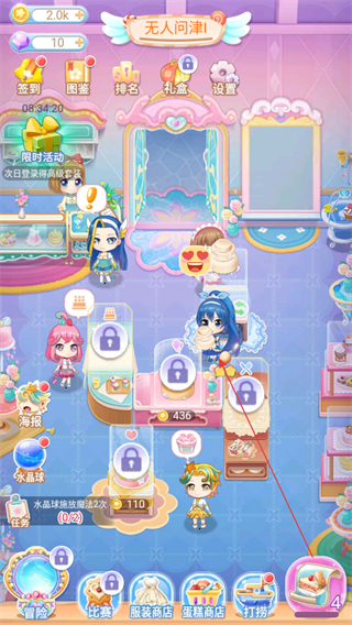 2、通过角色互动和区域解锁,提升店铺人气,积累经营资源。