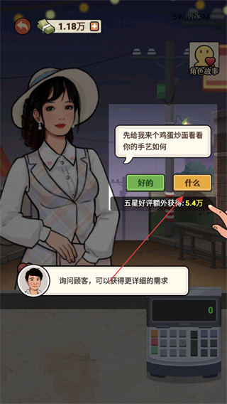 1、接收顾客订单如鸡蛋炒面,争取五星好评以获得额外收益。