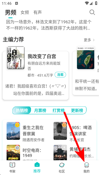 1、在有毒小说推荐页面,点击右下角我的选项,进入个人中心界面。