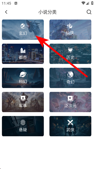 2、在小说分类页面,点击玄幻选项,进入玄幻小说列表界面。