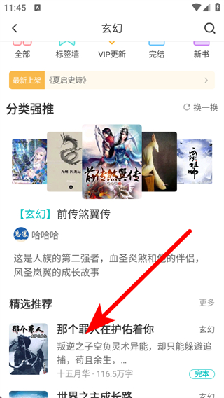 3、在玄幻小说列表界面,选择想要收听的小说,进入小说详情页面。