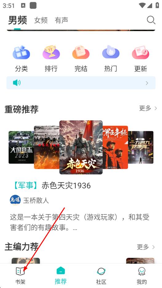 1、打开有毒小说App,点击底部导航栏中的书架选项。