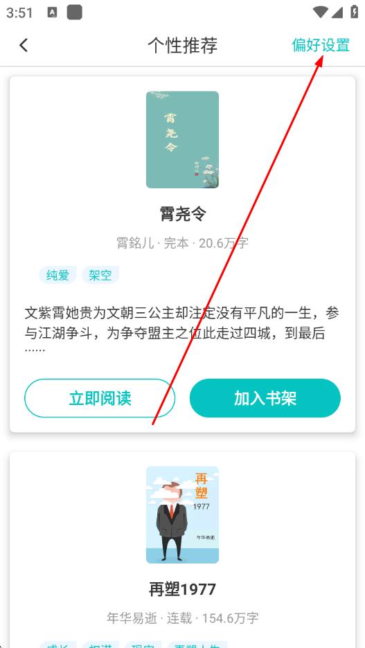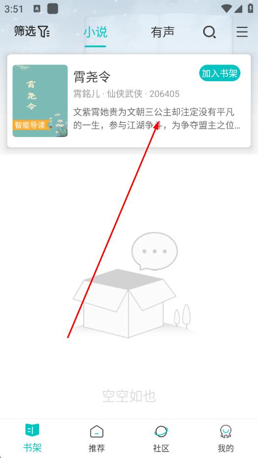 2、在书架页面,点击右上角智能导读书本,进入筛选或个性化推荐界面。