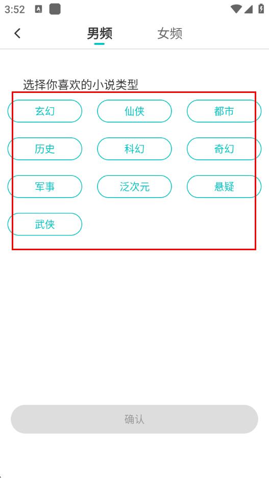 4、进入偏好设置页面后,“男频分类下,选择你喜欢的小说类型,比如玄幻、仙侠、都市等。
