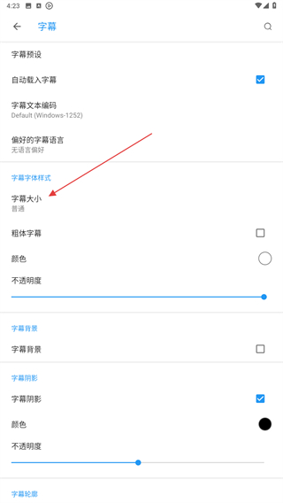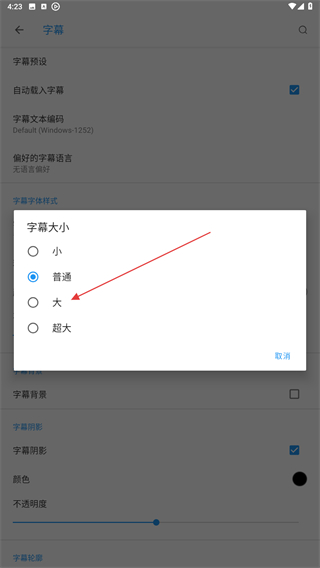 4、进入字幕的界面内,点击字幕大小的功能按钮。