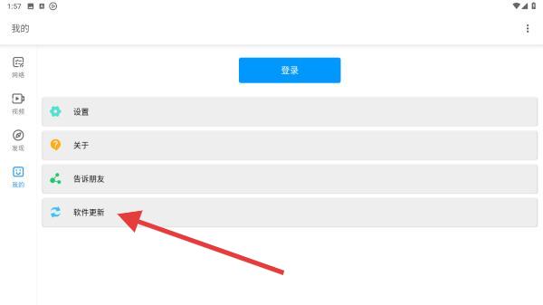 2、在我的页面中,找到并点击软件更新的选项,列表中通常在关于功能下方。