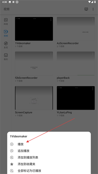 3、在下方弹出的菜单栏中,选择并点击播放的功能按钮。