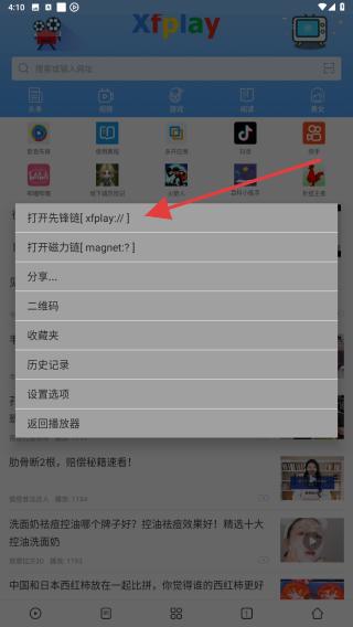 2、在弹出的菜单中,用户需找到并点击先锋链接的选项。