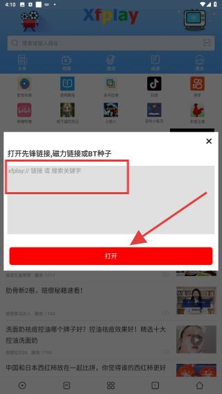 3、在弹出的输入框中,粘贴或输入需要打开的协议链接,然后点击打开按钮,即可开始加载链接内容。