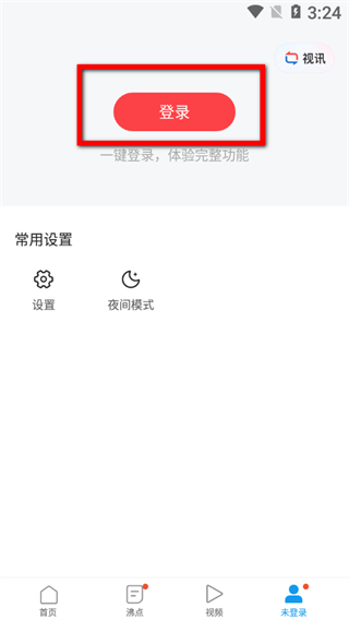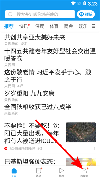 1、在新闻资讯app页面,点击未登录按钮,进入页面。