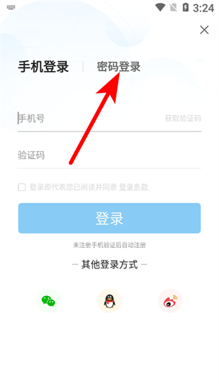 3、在登录选择页面,点击密码登录选项,进入密码登录页面。