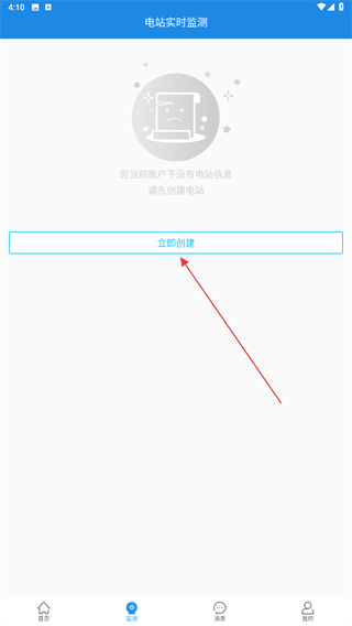 2、进入电站实时检测的页面内,点击立即创建的功能按钮。