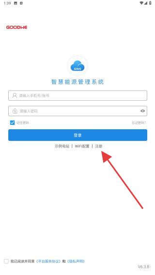 1、打开小固云窗APP,若未注册,进入便是登录界面,点击注册的按钮。