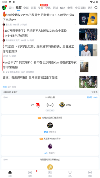 1、首先打开下载好的直播吧APP,进入软件后在首页的位置可以看到许多推荐的足球资讯内容,每天都有热门的体育资讯在这里进行推送;