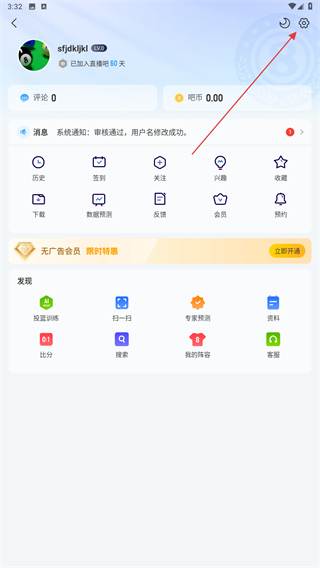 2、进入个人主页内,点击右上角齿轮状的功能设置按钮。