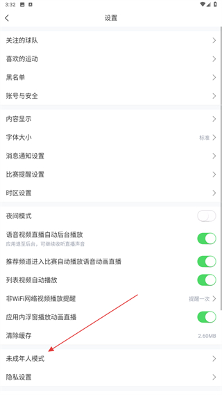 3、进入设置的界面内,点击下方未成年人模式的功能按钮。