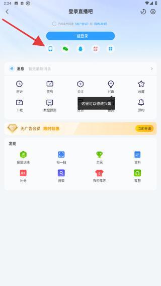 1、启动直播吧的应用,点击左上角用户头像的图标按钮。