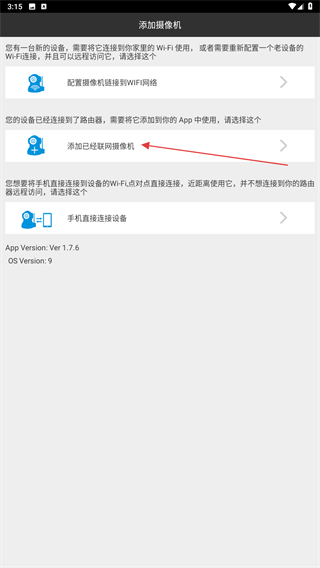 2、进入添加摄像机的界面内,点击添加已经联网摄像机。
