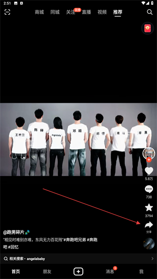 1、打开火山小视频的APP,在首页内点击右侧分享的按钮。