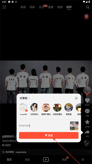3、选择后,再输入分享内容并点击发送按钮即可分享成功。