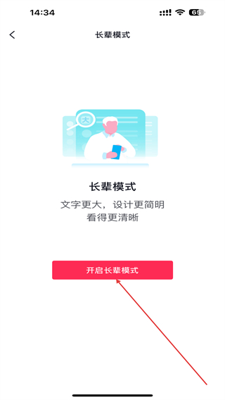 5、进入长辈模式的界面内,点击开启长辈模式即可。