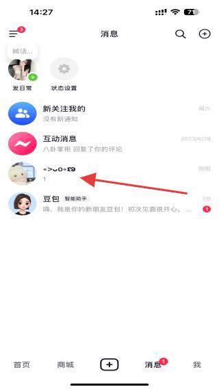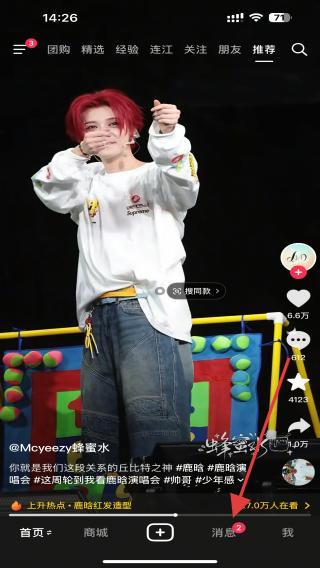1、启动抖音软件,点击底部导航栏的消息的图标。